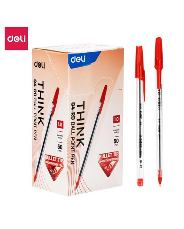 Deli Eq4 Think Ballpen Medium Red Bx50
