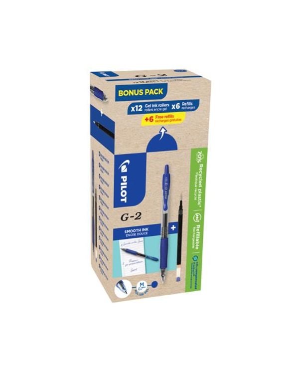 Pilot G-2 Rball 12Pen/12Refil Bl P24
