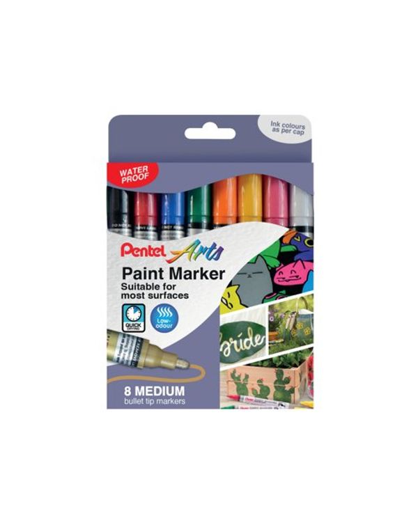 Pentel Paint Mrkr Med Bull Ast Pk8