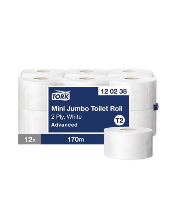T2 Mini Jumbo Toilet Roll 2-Ply Pk12