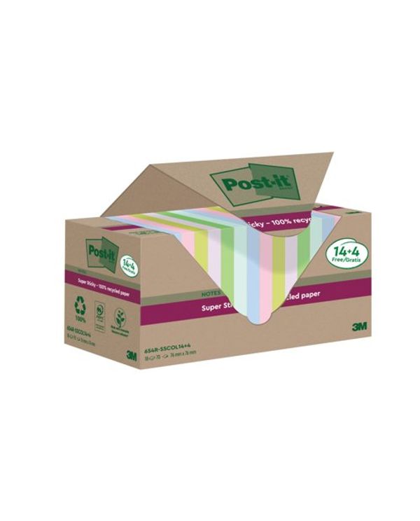 Post-It S/S Recycle 76X76 Asst Pk18