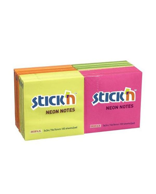 Stickn Adh Note 76X76Mm Neon Astd Pk12